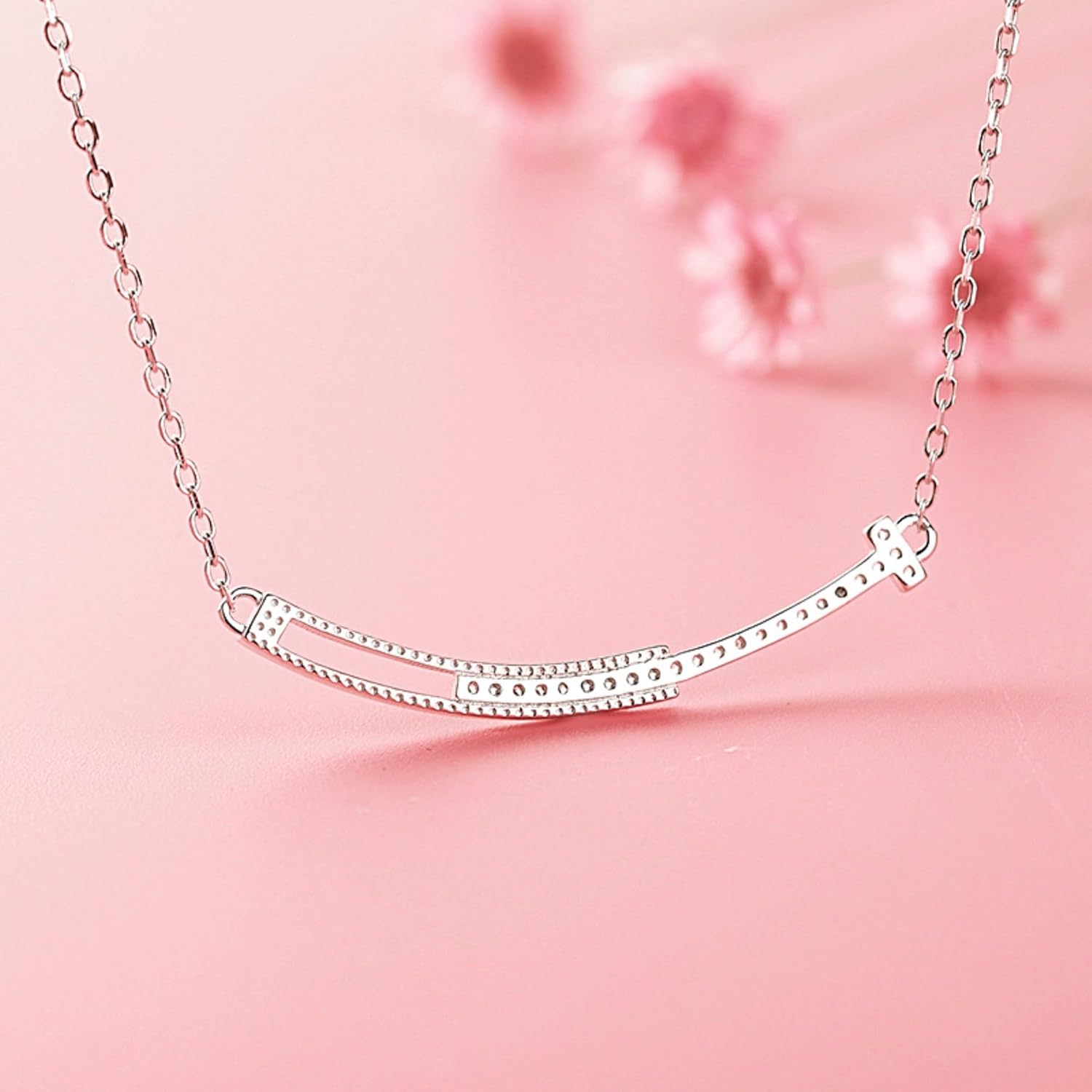 | Style | Smile Bar Pendant Dainty Chain Necklace |