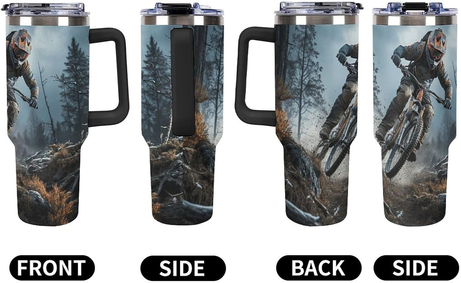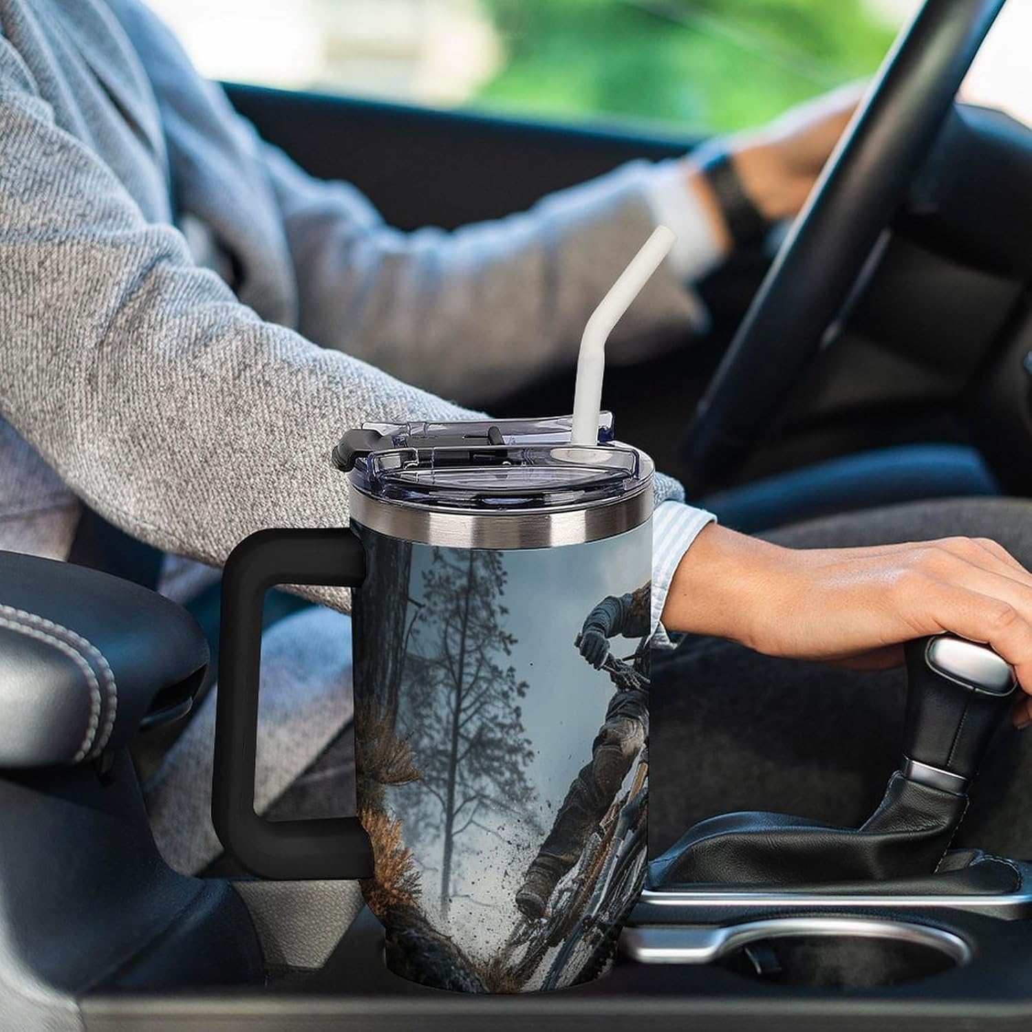40 oz Tumbler: Keep Your Drinks Hot or Cold for Longer Perfect for long trips or days at the beach, this 40 oz thermal tumbler keeps your drinks at the perfect temperature for hours. The Tumbler is made from 304 stainless steel and fits standard cupholders, and with a variety of pattern options, you can get an Emotional Support Water Bottle. Its double-wall stainless steel design ensures optimal insulation, while the leak-proof lid prevents spills. Plus, its 180-degree rotating handle adds convenience and practicality to your daily adventures. Capacity: 40 oz (approx. 1.2 liters) Double-wall insulation Leak-proof lid 180-degree rotating handle Enjoy your favorite drinks anytime, anywhere with this versatile and practical thermal tumbler! Tumbler is double walled and vacuum insulated to keep your drink hot or cold for hours. The cup is outfitted with an ergonomic handle, that is aesthetically designed for comfort. It comes with a straw lid and two straws so you can enjoy your favorite beverage on the go.