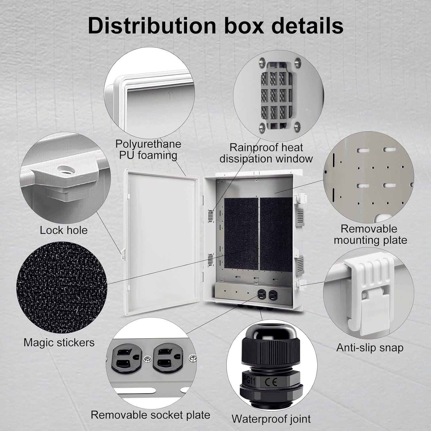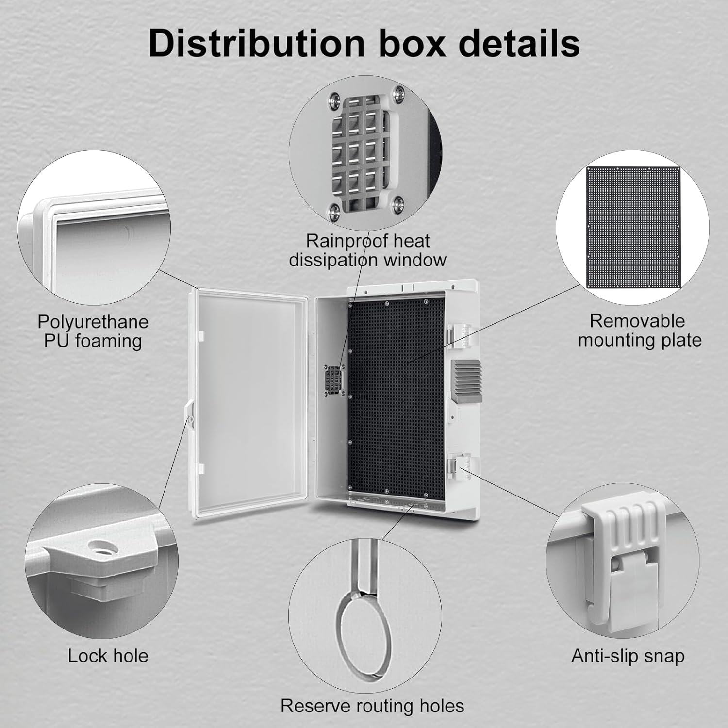 • 【Safety Protection】The box is equipped with a simple non-slip buckle to fix the door, waterproof and dust-proof, and padlock holes are reserved to provide double security protection.