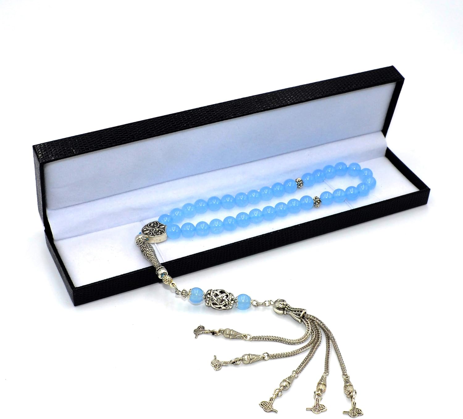 Nice design Muslim prayer beads.This Turkish style prayer beads are smooth to the touch and enjoyable to use. Information about these natural stones is based on individual experience and should not be considered as medical advice. Inadvertent use of it will not be our responsibility.ATTENTION:As different computers display colors differently, the actual item may vary slightly from the above images, thanks for your understanding.All dimensions are measured by hand, so there might be a very slight variation.SAFETY INFORMATION:Detergents and lotions can damage the finishing and colour of the stones / crystals.So don’t dip your stones / crystals in water. The Product is make from natural stones so small holes, crack marks on the surface or inside the stones are often visible.